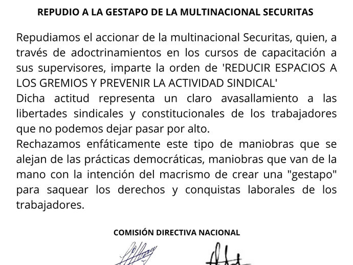 Sigue la Gestapo: ahora directiva de Securitas propone no dejar entrar a los gremios.